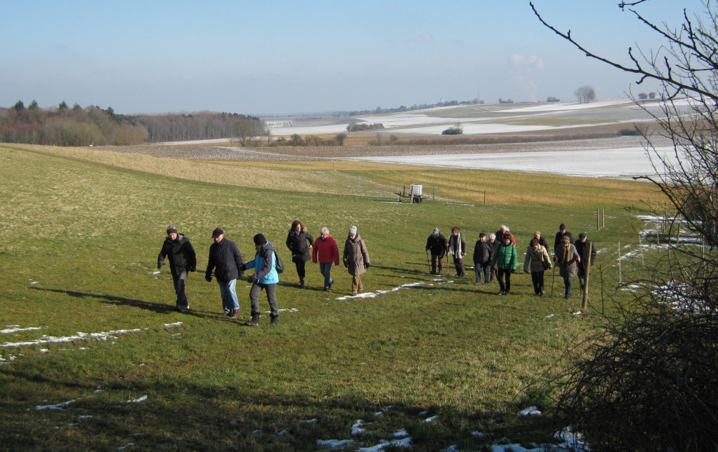 Bei der Wanderung am Sonntag im Gundelfinger Moos waren die Frauen in der Überzahl. Dort am Parkplatz angekommen regnete es. Schnell wurden die Regenjacken aus den Rucksäcken geholt. Doch der Regen hörte bald auf. Wie immer hatte Wanderführer Werner eine neue interessante Strecke ausgesucht. Wir wanderten durch das Gundelfinger Moos, vorbei an 2 Seen, großen Maisfeldern und an einer Kuhherde, auch Kälbchen waren dabei, die uns faszinierten und uns herzlich mit einem „Muh“ begrüßten. Im Blick hatten wir immer Gundremmingen. Auf dem weiteren Weg sahen wir noch viele Tiere. Man könnte meinen, der Wanderführer hätte sie extra wegen uns herbestellt. Es waren Rehe und auch 2 Hasen, die in unserer Sichtweise über den Weg hoppelten, außerdem Wildgänse, quer über den Wiesen verteilt. Nach dieser interessanten Wanderung ließen wir den Tag noch in der „Krone“ in Niederstotzingen bei einem guten Vesper und angeregter Unterhaltung ausklingen. (G.M.)