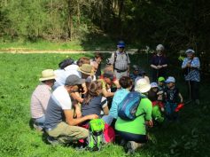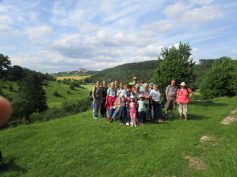 Am Sonntag trafen sich 17 Erwachsene und 4 Kinder am Seeplatz zur Wanderung auf dem Härtsfeld. Mit dem Privat Pkw ging es dann zum Wanderparkplatz Steinmühle beim Neresheim. Gleich zum Einstieg in den 6,8 km langen Rundwanderweg Egau – Zwing konnte die kleine Kapelle an der Steinmühle besichtigt werden. Der Weg führte am Kräutergarten der Bienenzüchter und am Kalkwerk vorbei. Unser Wanderführer Werner konnte uns dabei noch wertvolle Informationen und Tipps geben. Weiter ging es vorbei am Biotop, wo uns eine Vielzahl an Schmetterlingen begrüßte, einen längeren Anstieg hinein in den Wald hoch zum Golfplatz. Dabei musste der eine oder andere Zwischenhalt eingelegt werden, damit die Kinder die Weinbergschnecken und Wildpflanzen oder auch riesige Ameisenhaufen bewundern konnten. Auch eine kleine Blindschleiche kreuzte unseren Weg. Im Naturschutzgebiet Zwing gabs es einen kurzen Zwischenhalt in der Köhlerei. Auf Schautafeln wurde erklärt, wie die Holzkohle fürs Grillen entsteht, bevor es weiter auf den Baumlehrpfad ging. Hier konnte man sein Wissen über heimische Baumarten testen und als wir dann an der Grillstelle Zwing ankamen, wurden wir mit einem wunderschönen Blick auf das Kloster Neresheim belohnt. Nach einer weiteren kurzen Rast, kamen wir dann schon wieder am Wanderparkplatz Steinmühle an. Zum Abschluss traf man sich dann noch im Waldhorn in Rotensohl um den tollen Nachmittag ausklingen zu lassen (uj)