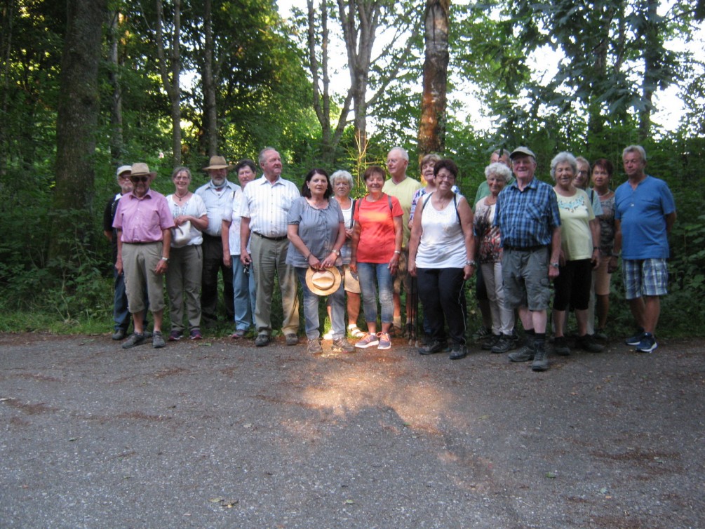 21 Wanderer hatten am 18. Juli die Wanderstiefel geschnürt, um auf Einladung von Horst und Irmgard Labatzky den Zanger- und den Irmannsweiler Wald zu durchqueren. Vom Parkplatz an der Zanger Kreisstraße aus ging es auf dem Schnepfenteichweg los, in Richtung Irmannsweiler. Der Schnepfenteich erinnerte die Wanderer an die einst in höfischen Kreisen beliebte Jagd auf die Waldschnepfe, die gebraten und gegrillt zu den Delikatessen zählte. Verzehrt wurde auch der offenbar wohlschmeckende „Schnepfendreck“, womit der Darminhalt der langschnäbeligen Vögel gemeint war. Solch unappetitliche Themen standen jedoch nicht auf der Tagesordnung der Wanderer. Eher schon die angenehme Frische, die der Buchenwald auf der ersten Etappe der 3,2 Kilometer langen Tour entwickelte. Sie wurde angesichts der 30 Grad, die das Thermometer in den Autos bei der Anfahrt anzeigte, als recht wohltuend empfunden. Mit von der Partie war auch die „Vorstandsfamilie“ Gerhard und Doris Niederberger. Im „Gmeintal“ wüteten vor Jahrzehnten die Sturmböen Wiebke und Lothar und ließen nicht nur die Gmeintalhütte, das einst beliebte Wanderziel, in Trümmern zurück, auch die Fichtenhochwälder drumherum wurden Opfer der Stürme. Zwangsläufig ist daher der Wald im „Häldele“ noch jung. Fingerhut und Vogelbeere standen hierfür im „Zeugenstand“. Sie zählen zu den Erstbesiedlern und zierten die wenigen Bestandeslücken. Irmannsweiler gehört zur Gemeinde Steinheim und besaß eine kleine Burg, die aber bereits 1463 aufgegeben wurde. Auf ihrem Burghügel thronte später ein Forsthaus. Im Irmannsweiler „Rössle“ wurde gerastet, ehe es auf der gleichen Strecke wieder zum Ausgangspunkt zurückging. (bi).