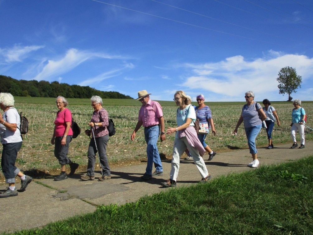 Bei schönem Herbstwetter trafen sich fleißige Wanderer am Seeplatz, und fuhren nach Weiler, von wo aus die Wanderung um den Helfenstein startete. Zuerst ein Stück auf dem „Löwenwanderweg“ bis zum Helfenstein und dann zum Bismarckfelsen. Beides mal hatten wir einen wunderschönen Blick ins Tal. Auf dem Helfenstein konnte man sich bei dem warmen Wetter noch mit einem Eis stärken. Auf guten Wald- und Wiesenwegen ging es weiter, wobei die schattigen Waldwege begehrter waren. Wie gewohnt ließ man den schönen Tag noch bei einem guten Vesper in Stubersheim ausklingen. Wanderführer Werner bedankte sich bei den Wanderern und diese bedankten sich wiederum bei ihm, ehe man gutgelaunt die Heimfahrt antrat. (G.M.)