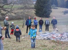 Letzten Samstag war Freude auf der Erpfenhauser Heide angesagt. Endlich konnnte der aufgeschichtete Haufen, der bei der Heidepflege zusammengetragen wurde, von Werner und seinen Helfern angezündet werden. Die Kinder vertrieben sich die Zeit bis zum Würstchen-Grillen mit Herumtollen und Spielen. Dann endlich war es soweit. Eine Mutter hatte auch Teig für Stockbrot mitgebracht. Alle Helfer und besonders die Kinder standen ums Feuer herum mit Stecken, auf denen die Würstchen aufgespießt waren und mit Stecken, um die das Stockbrot gewickelt wurde. Zum Nachtisch gab es schon Lebkuchen und Brödle von Gertrud u. Ruth. Langsam zeigten sich Kälte und Dunkelheit und man machte sich nach einem schönen Nachmittag auf den Weg nach Hause. Die Kinder bekamen zudem noch ein Überraschungs-Ei mit auf den Weg.(G.M.)
